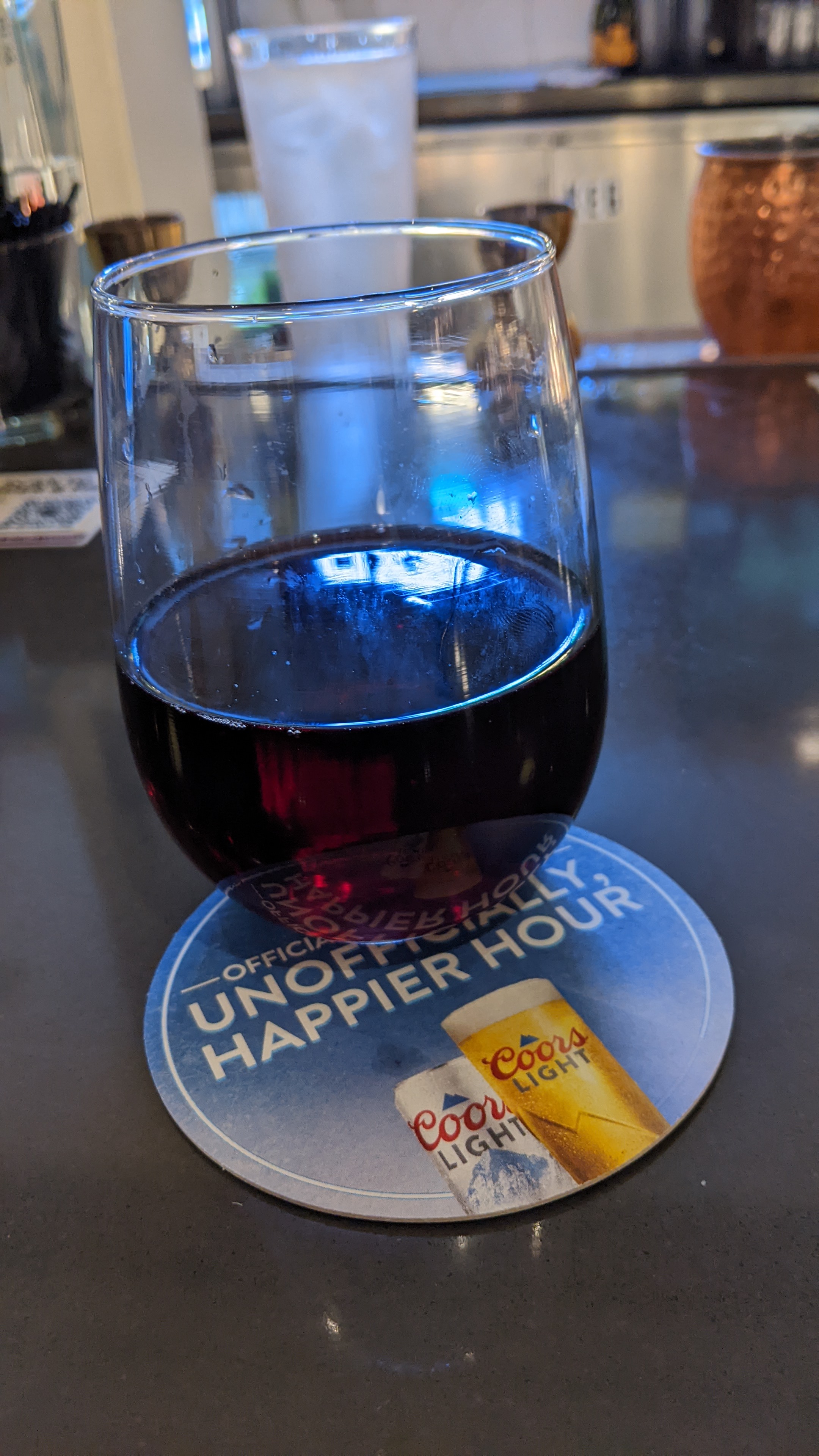 I ordered a glass of my favorite red wine, only to be told it was sold out. I accepted an alternative. A fellow traveler arrived to occupy the stool next to me, and he also asked about food. Then he ordered as well, settling on his third choice of a draft ale!